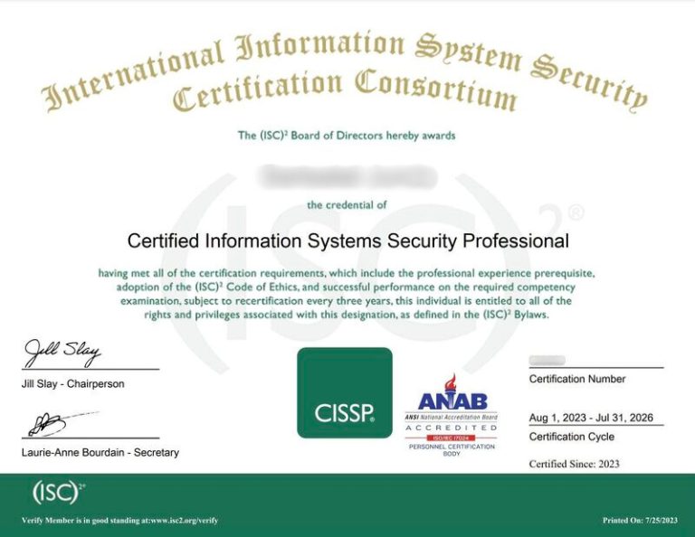Para obtener la certificación CISSP se requieren 5 años de experiencia profesional acumulada a tiempo completo en dos o más de los 8 dominios. Un título universitario o una acreditación reconocida por ISC2 puede convalidar 1 año.
